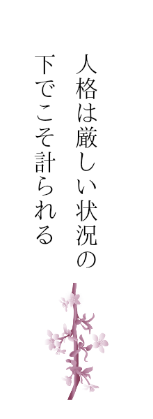 苦境の時こそ、大きな飛躍に向けた準備期間であり、成長の絶好の機会と捉えられる柔軟な心、そして困難に遭っても、それに敢然と立ち向かう勇気を持ちたいものです。