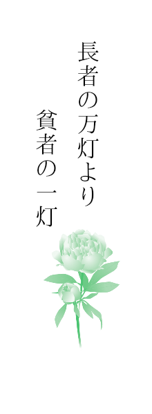 『阿闍世王授決経』に説かれた有名な逸話です。天竺のマガダ国の阿闍世王は、霊鷲山で御説法される釈尊に、多くの灯火を布施されました。